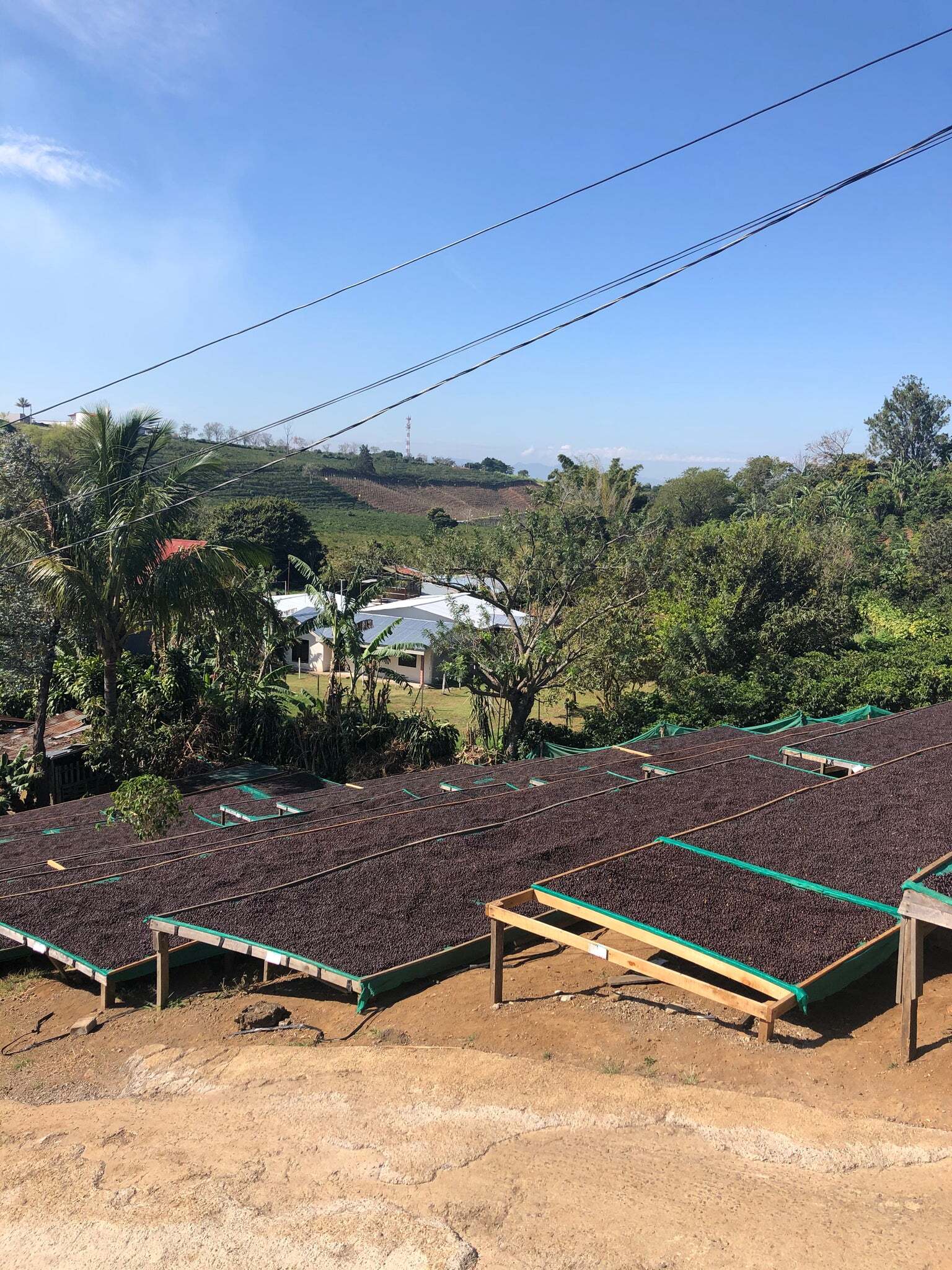 スティーブンは、最適な熟度に達したチェリーだけを摘み取った後、コーヒー豆を工場に運びます。チェリーを約5cmの厚みにアフリカンベッドに敷き詰められ、一晩そのまま放置されます。その後、チェリーは1日に何度も攪拌され、夜間は雨から守るためにカバーがかけられます。乾燥には通常15~18日かかります。